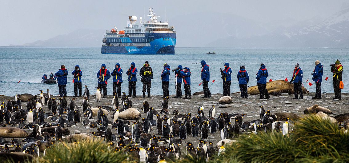 - Beeindruckende Landschaften mit weißen Sandstränden auf den Falkland-Inseln; schwarze Sandstrände und alpine Landschaften in Südgeorgien; Eisberge, Packeis und Gletscher auf der Antarktischen Halbinsel